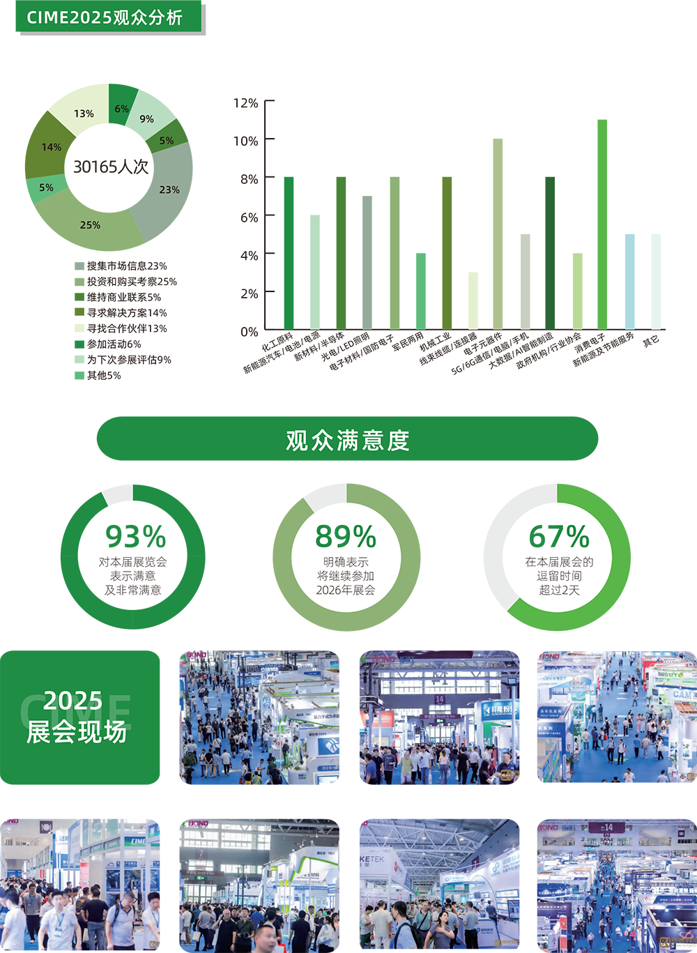 CIME2025 第8届深圳国际新材料及设备展于06月6日在深圳国际会中心圆满落下帷幕。本届展会现场齐聚476家国内外核心和供应链骨干企业及品牌参与展览展示,展会面积达到20,000平米,参观总人次30165名观众莅临现场参观,展会同期主题论坛的参会观众超过4,000人次。展会邀请到:DenKa、圣戈班、安迈铝业、雅克科技&华飞电子、泽希新材、天马新材、金戈新材、乐远化学、国科众联、中铝新材、国瓷股份、晶亿新材、氮硼科技、顺之晟精密、科隆粉体、任丙新材、东洋铝材、空气产品、惠丰钻石、飞孟金刚石、联合精密、恒钻新材、中南钻石、厚德钻石、宁波晶钻、优普莱、叁星飞荣、有研复材、汉华热管理、锐腾新材、和润新材、皇星化工、迈图、安必亚、镝普科技、宏柏新材、绿色家园、缔展国际、晟鹏技术、道明光学、先丰纳米、德鼎原、恒大新材、盛唐新材、铁锚科技、本松新材、普万高新、甲基贸易、普偌斯、军瓷电子、中瓷、棋丰塑胶、飞晟精密、国昊密封、延长石油、方达新材、恒源力、大图热控、同创电子、意兆电子、海斯福、万维热传、爱发科、利欧集团、美芯威、锐莱热控、盛亿达、万镭激光、杰凯流体、长原液冷、天乾科技、诺通流体、世博佳、奥镭数控、瑞洲科技、博菲特、拓川科技、西丽研磨、思迈达、金盾龙、森捷智能、士锋自动化、捷豹自动化、和一自动化、东莞航达、睿奥检测、欣浩天、显华科技、英泰激光、天行健、月无声、微谱集团、英格海德、真理光学、林赛斯、赛默飞世尔等400多家产业链优秀参展商现场交流。